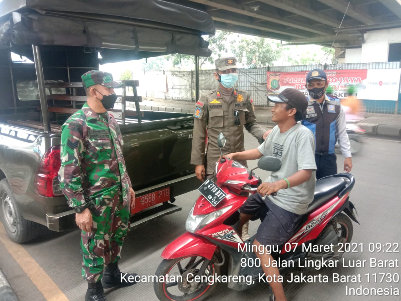 Danramil 04 Cengkareng Kodim 0503 Jakarta Barat, Kaptenn Cpl Edy Moerdoko membenarkan bahwa di hari minggu atau hari libur ini, tetap turunkan Babinsa nya untuk bergabung dalam operasi yustisi guna melaksanakan penegakan protokol kesehatan.