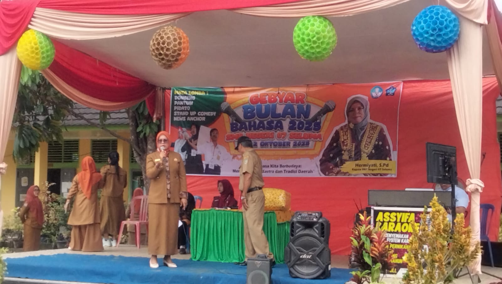 DETIKPOS.ID || BENGKULU – Smp Negeri 07 Seluma menggelar berbagai kegiatan dalam rangka menyambut Bulan Bahasa Selasa (21/10/2025. Bulan bahasa merupakan bulan yang berkaitan erat dengan sejarah bahasa Bangsa Indonesia, yaitu Sumpah Pemuda pada 28 Oktober 1928. Hermiyati, S.Pd. kepala SMP Negeri 07 Seluma propinsi Bengkulu jawab program Bulan Bahasa ini menyampaikan agar para peserta didik tahu bahwa Bulan Bahasa itu terlahir karena kita memaknai Sumpah Pemuda yang salah satu isinya mengenai bahasa persatuan, yaitu bahasa Indonesia.