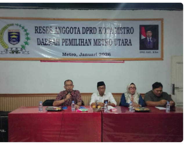 Detikpos.id.— Kota Metro Reses Anggota Dewan Perwakilan Rakyat Daerah (DPRD) Kota Metro Efril Hadi Fraksi Partai NasDem, menggelar Reses dalam rangka menyerap aspirasi masyarakat, yang berlangsung di Seruit Jejamo kelurahan Banjarsari, kecamatan Metro utara, Kota Metro, Jum’at Malam (30/01/2026).