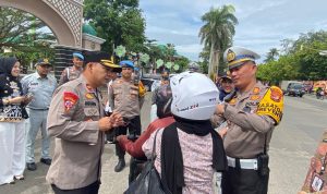 Pengendara yang kedapatan menggunakan helm standar, mematuhi rambu lalu lintas, serta membawa kelengkapan surat-surat kendaraan diberikan paket sembako sebagai bentuk apresiasi. Kegiatan ini dipimpin oleh Kasat Lantas Polres Metro AKP Farid Riyanto, S.IP., M.H, bersama Kasat Intel Polres Metro Iptu Dr. Ariesta Prayoga, M.M.
