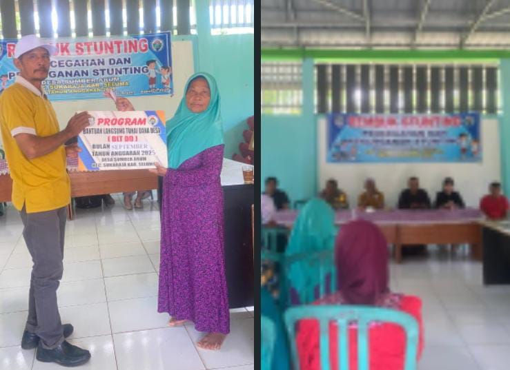 DETIKPOS.ID || BENGKULU SELUMA – Kegiatan Penyaluran bantuan langsung tunai dana desa ( BLT DD ) tahun 2025 desa sumber arum kecamatan Sukaraja kabupaten seluma, propinsi Bengkulu berjalan lancar.Jumat, 12 September 2025. Penyaluran bantuan tersebut dilakukan di balai desa. Bantuan Langsung Tunai Dana Desa adalah kegiatan pemberian bantuan langsung berupa dana tunai yang bersumber dari Dana Desa kepada Keluarga Penerima Manfaat (KPM) dan diputuskan melalui Musyawarah Desa sesuai dengan kriteria yang ditetapkan dalam peraturan perundang-undangan, Pemerintah Desa sumber arum melakukan kegiatan penyaluran Bantuan Langsung Tunai Dana Desa (BLT DD) Bulan September tahun 2025 sebanyak 27(dua puluh tujuh) KPM (keluarga penerima manfaat).