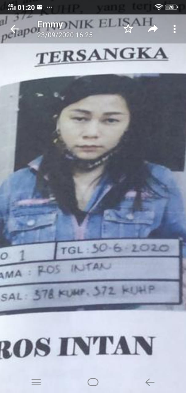 Sejak saya buat laporan, lanjut Emmy, dengan Nomor LP/888/K/VIII/2019/SPKT/Res Tangsel tanggal 01 Agustus 2019 sampai sekarang ini belum juga ada kepastian kasusnya. Padahal Ros Intan sudah menjadi tersangka di Polda Metro jaya setelah korban lain melaporkan belakangan.