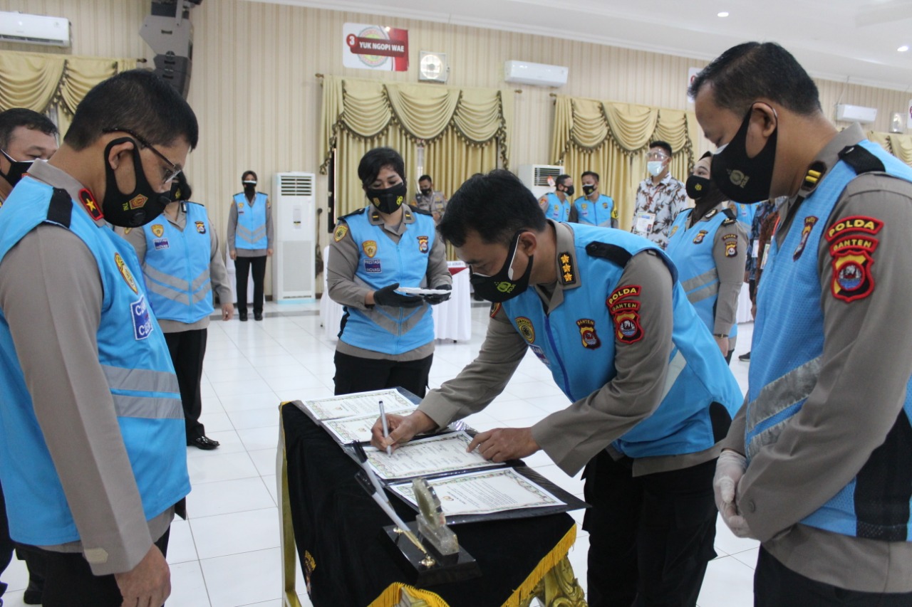 Brigjen Pol Drs. Ery Nursatari S.H.,M.H. memimpin acara penandatanganan pakta integritas dan pengambilan sumpah seleksi penerimaan Sekolah Inspektur Polisi Sumber Sarjana (SIPSS) Tahun Ajaran 2021.