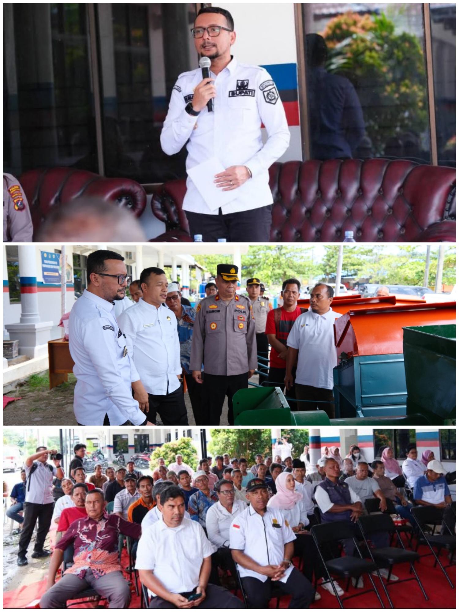 - Kepala Dinas Ketahanan Pangan dan Pertanian, Azzaman Parapat, yang memaparkan mekanisme pendistribusian alsintan serta rencana pendampingan teknis bagi setiap kelompok tani.
