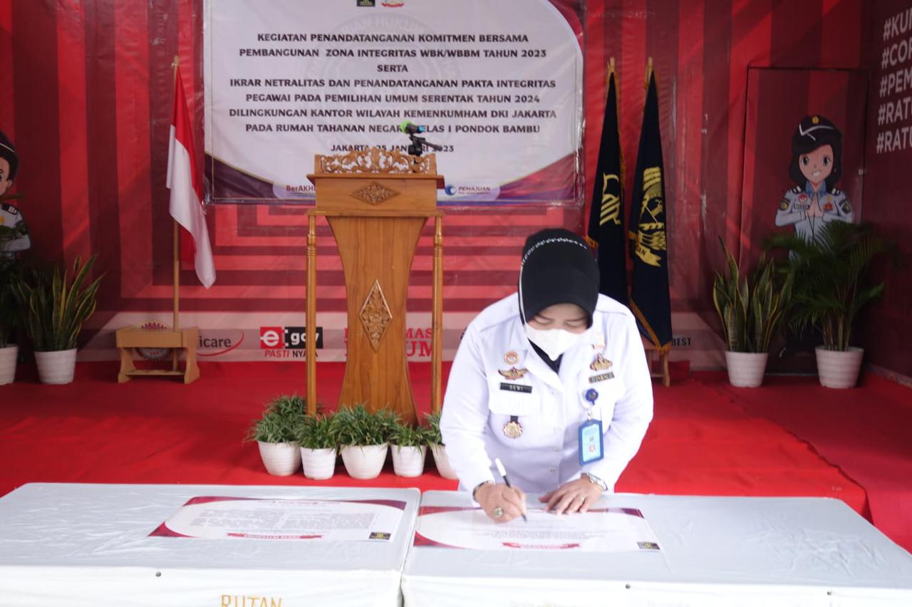 Petugas Rutan Kelas I Pondok Bambu Tandatangani Komitmen Pembangunan Zona Integritas