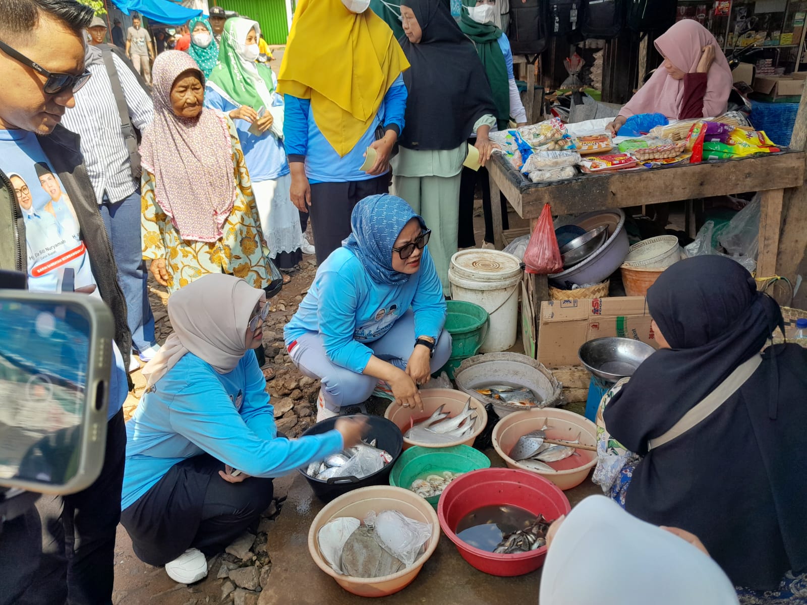 Pantauan di lapangan, Ela Siti Nuryamah berkeliling pasar sambil mengajak para pedagang berdialog. Mbak Ela–sapaannya juga, membeli sayur di beberapa pedagang di pasar tersebut.