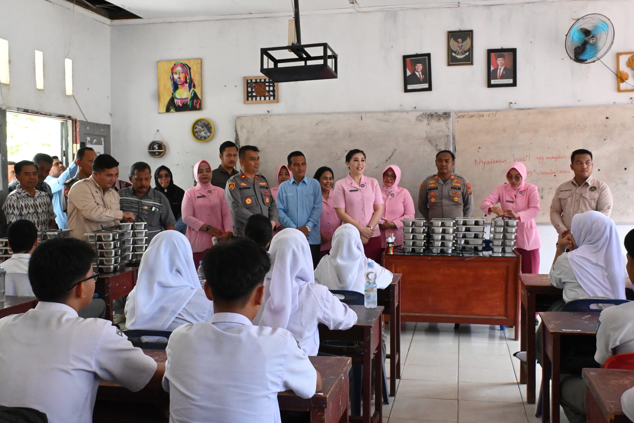 Momen humanis terpancar ketika para siswa menerima makanan bergizi dengan wajah ceria.