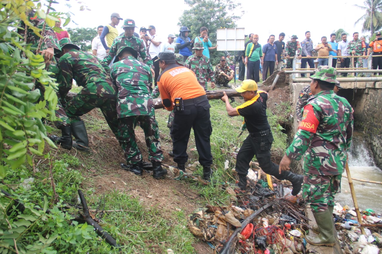 Dandim 0429/Lamtim Letkol Czi. Indra Puji Triwanto, SH menyampaikan karya bakti pembersihan saluran air dari berbagai kotoran sebagai upaya cegah bencana banjir.