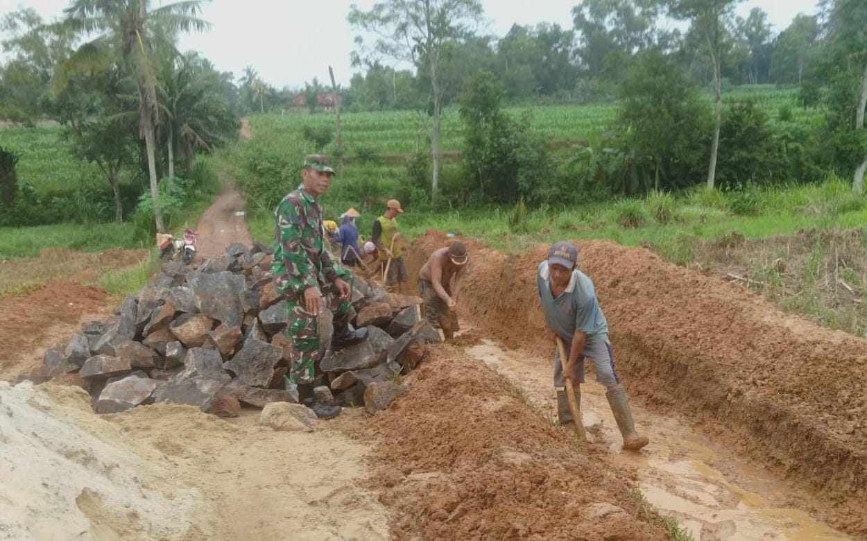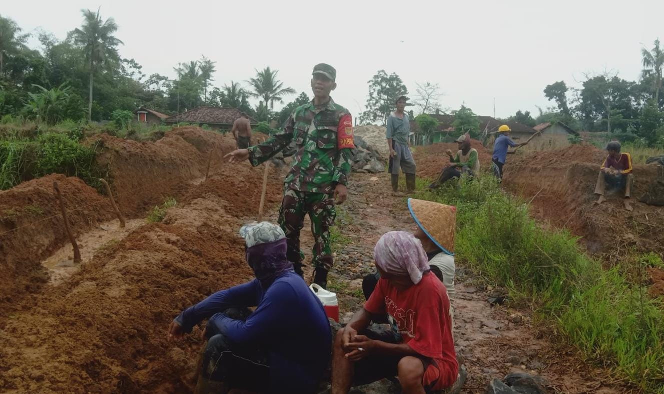 Babinsa 02/WB Lakukan Monitoring Dan Pendampingan Pembangunan Drainase