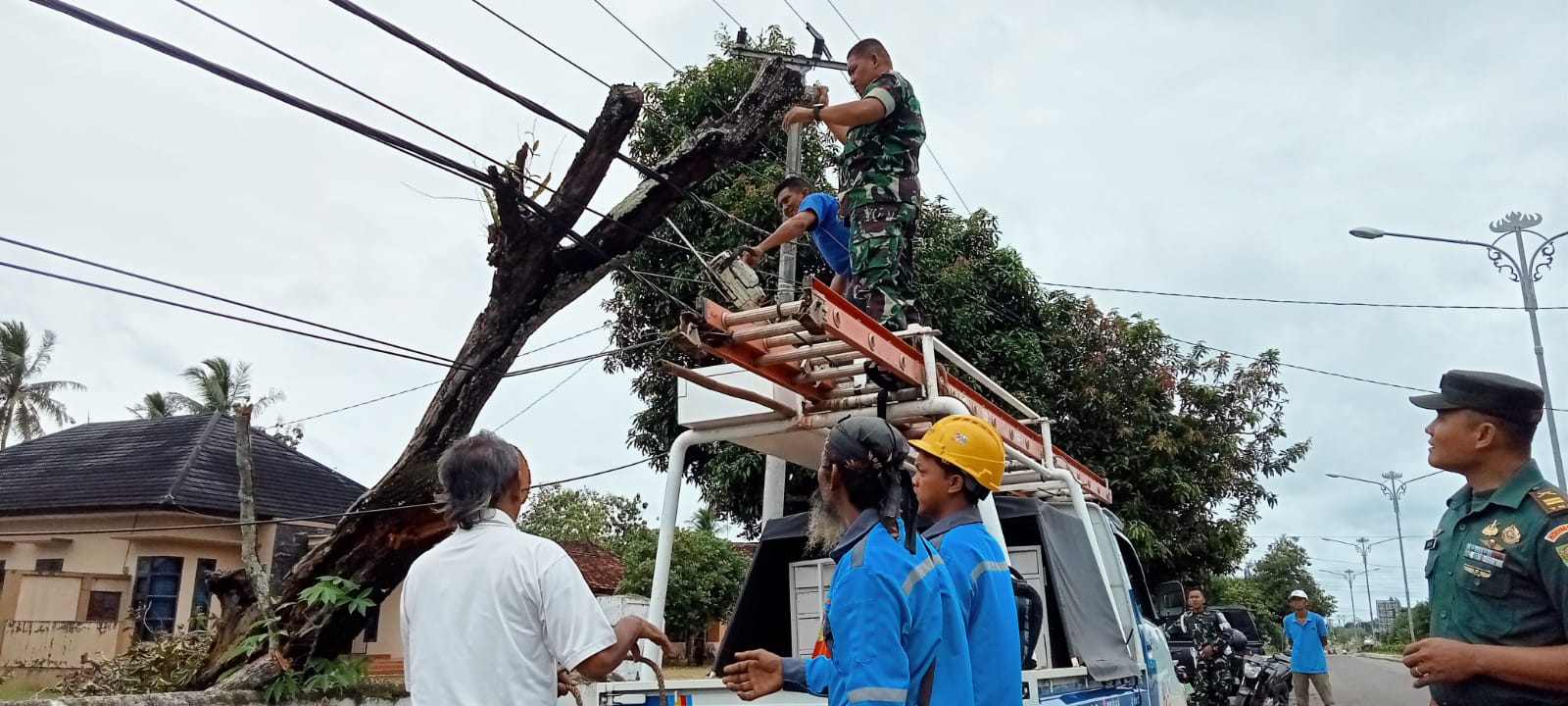 Seperti yang di lakukan Danramil 429-05/Sukadana Kodim 0429/Lamtim Lettu Inf. Sugiri bersama anggotanya membantu pihak PLN dan Kasi Pertamanan Lamtim mengevakuasi pohon tumbang di Desa Mataram Marga yang menimpa instalasi listrik, Rabu (25/1/2023).