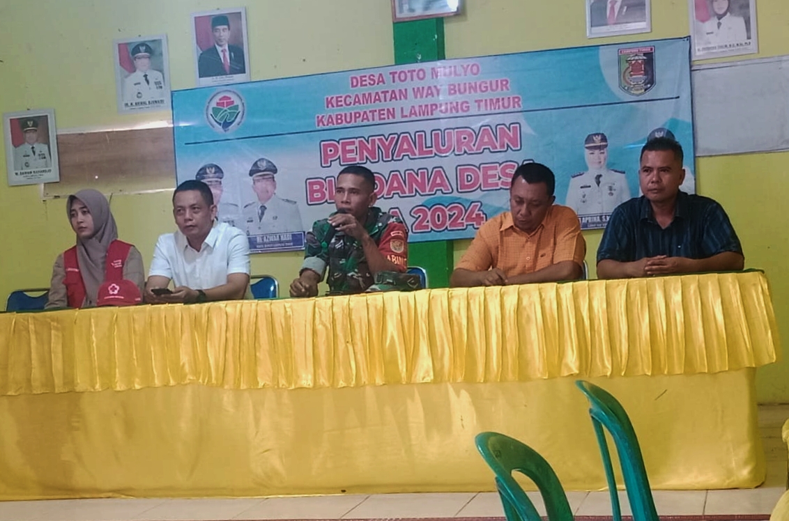 Detikpos.id, Lampung Timur — Babinsa Koramil 429-02/Way Bungur Kodim 0429/Lamtim Serma Agus Susanto dan Sertu Yandi menghadiri kegiatan penyaluran Bantuan Langsung Tunai Dana Desa (BLT-DD) Triwulan I, Minggu (7 April 2024).