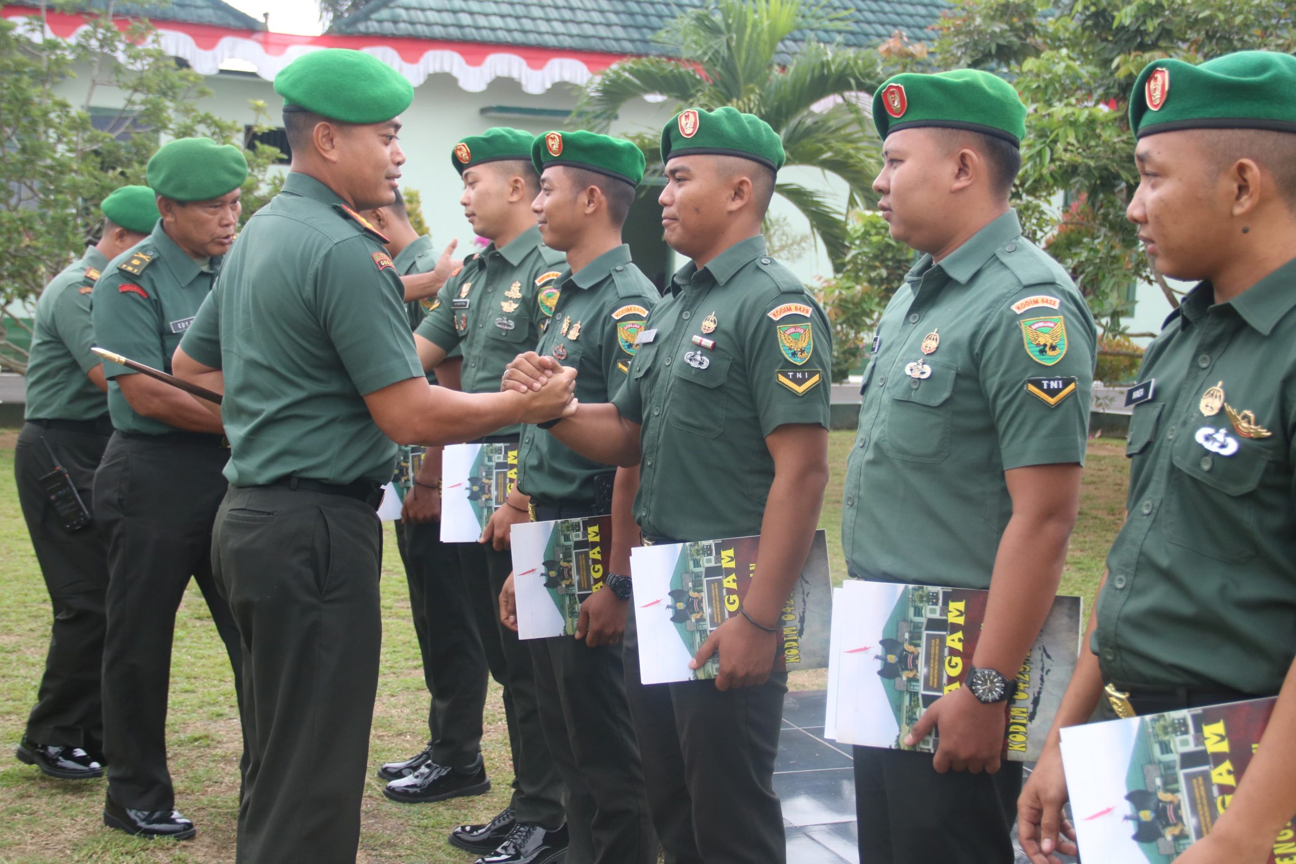 Diakhir kegiatan didampingi Kasdim dan Pa Staf, Dandim memberikan Piagam penghargaan kepada personel yang akan pindah satuan ke Kodim 0422/Lambar. (Pendim0429/lamtim).