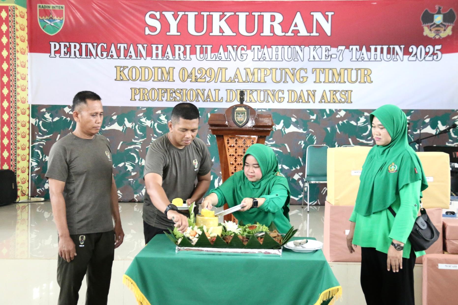 Detikpos.id, Lampung Timur – Komando Distrik Militer (Kodim) 0429/Lamtim menggelar acara syukuran dalam rangka memperingati hari jadi Kodim ke-7, bertempat di Aula Gatot Subroto Makodim, Jum’at (12/12/2025).