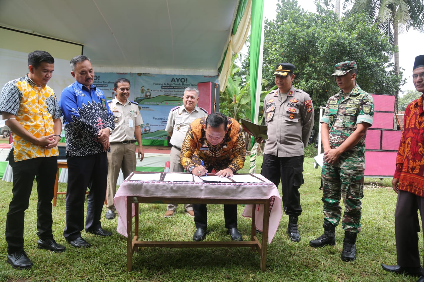 Detikpos.id, Lampung Timur—Kegiatan pelaksanaan pencanangan Gerakan Masyarakat Pemasangan Tanda Batas (GEMAPATAS) serentak di seluruh wilayah Indonesia berlangsung di Desa Negri Jemanten, Kecamatan Marga Tiga, Jum’at (3/2/2023).