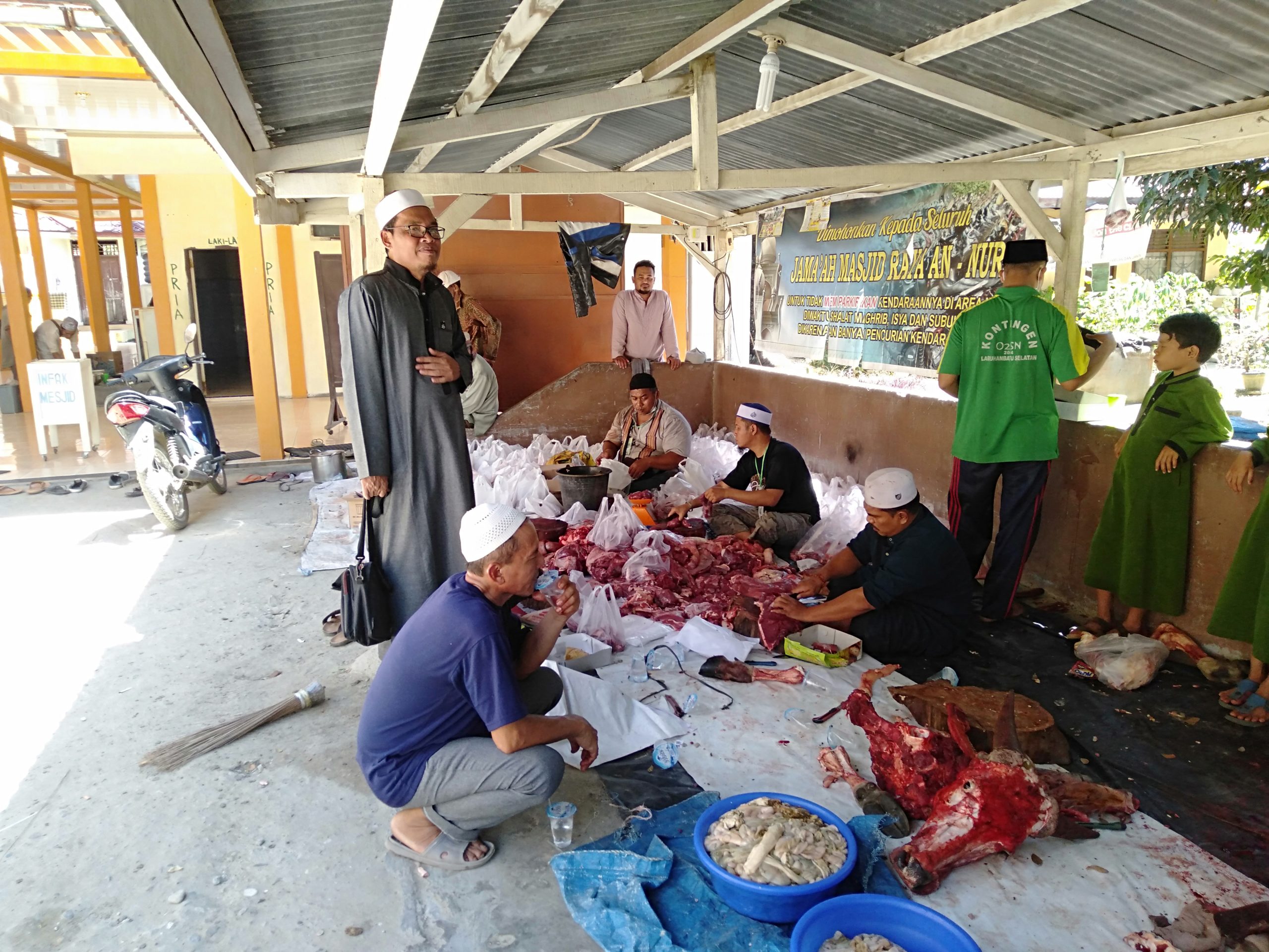 Panitia Kurban tahun ini sebanyak 25 orang,di Ketuai Ustad Ridwan Malik S.Ag,Menurut Keterangan Ustad Ridwan Malik S,Ag bahwa,”pada tahun ini ada peningkatan Ummat untuk Berkurban.di bandingkan dengan tahun lalu.Ustad Ridwan Malik S,Ag selaku panitia Kurban berharap.semoga tahun demi tahun,Ummat Muslim yang mau Melaksanakan Kurban dapat terus bertambah.dan di Mudahkan rezqi nya Aamiiin.
