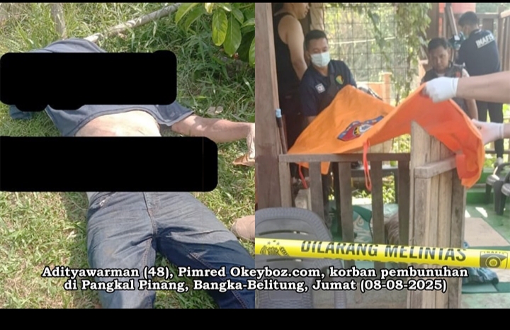 detikpos.id.__Pangkal Pinang – Dunia pers Indonesia kembali berduka dan berang. Seorang wartawan senior, Adityawarman (48), Pemimpin Redaksi media lokal Okeyboz.com, ditemukan tewas mengenaskan di dasar sumur kebun miliknya di kawasan Dealova, Kelurahan Air Kepala Tujuh, Kecamatan Gerunggang, Kota Pangkalpinang, Provinsi Bangka-Belitung (Babel), Jumat (8/8/2025) siang.